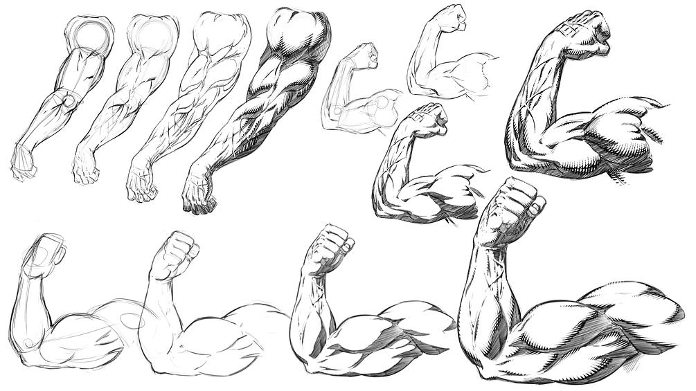 How to Draw and Shade Muscular Arm Poses Comic Book Style Step by Step